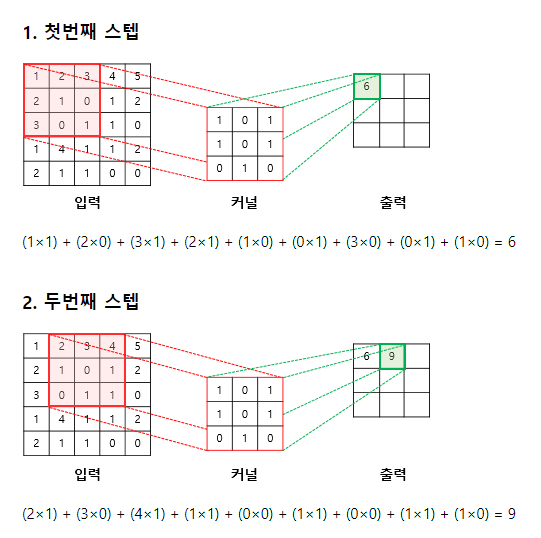 입력값이 커널과의 연산과정을 거쳐 출력값이 된다 커널은 필터라고도 불린다