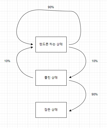 아래 그림은 잠에 드는 마르코프 프로세스를 도식화한 것이다.