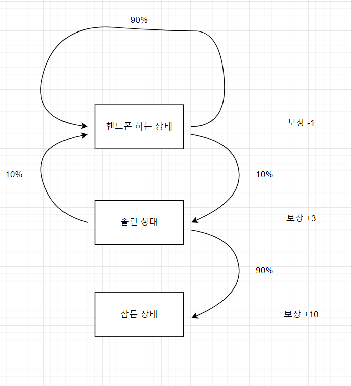 아래그림은 잠에 드는 마르코프 리워드 프로세스를 도식화 한것이다.